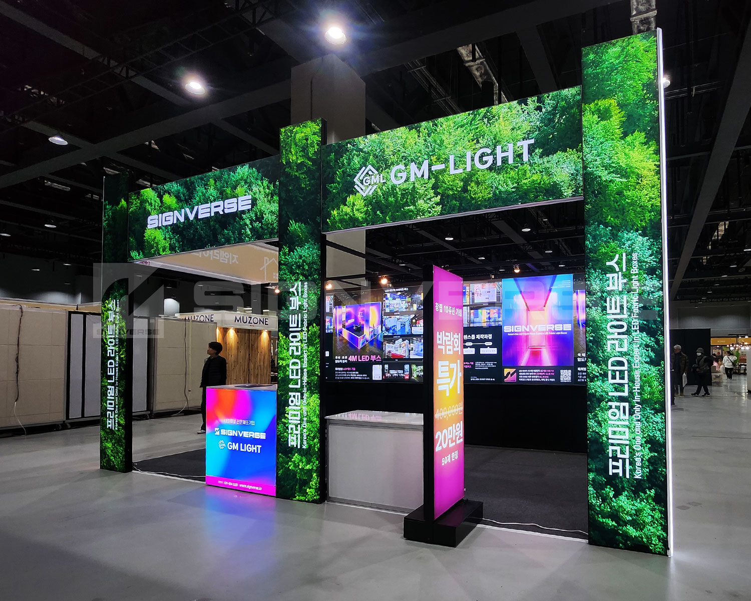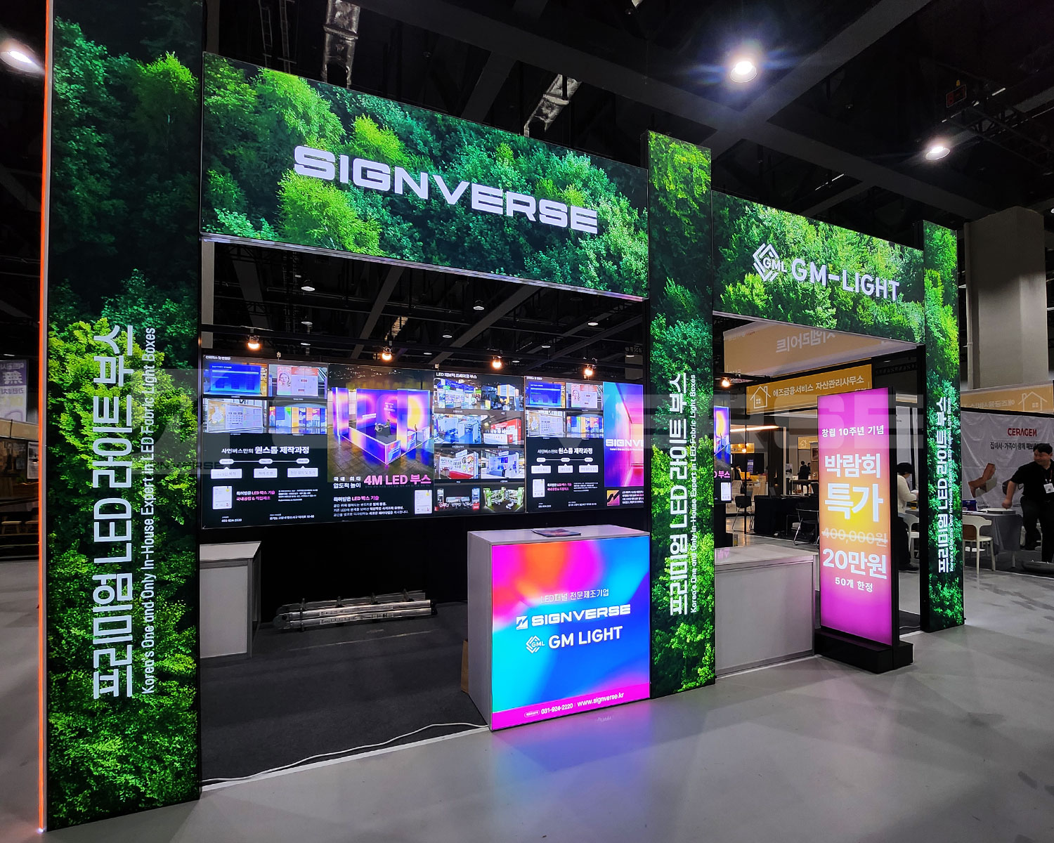 시야를 가득 채우는 사인버스의 대화면 LED 연출로